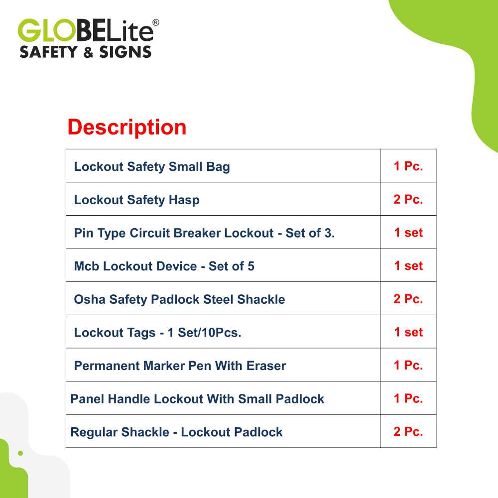 Includes all core devices required for locking out MCBs, panels, and electrical controls.
