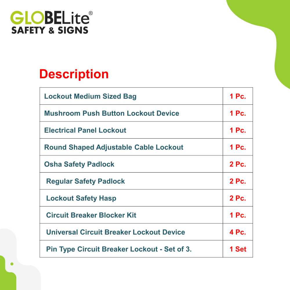 The Personal Electrical Lockout Kit is a compact, all-in-one solution designed for technicians, electricians, maintenance teams, and safety professionals who need reliable lockout/tagout tools on the go. This kit ensures compliance with OSHA/IS standards and helps prevent accidental energization during electrical maintenance or repair work.